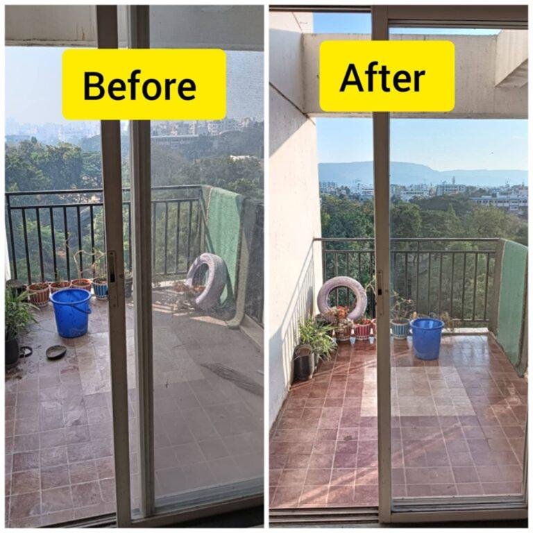 We wash and scrub balcony floors, walls, and railings — removing dust, algae, and stains for a clean outdoor space.